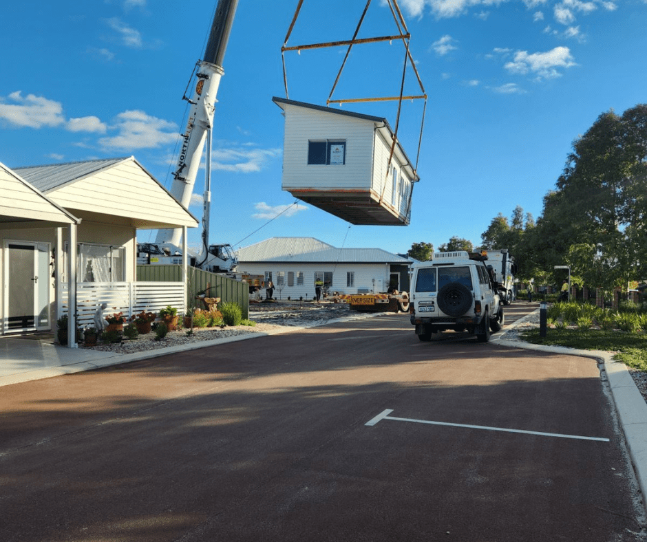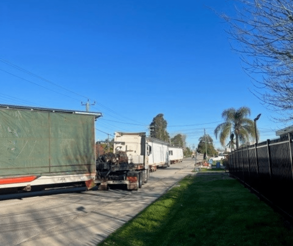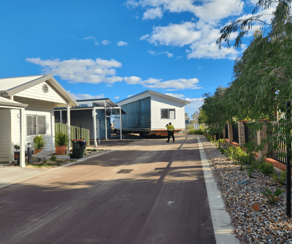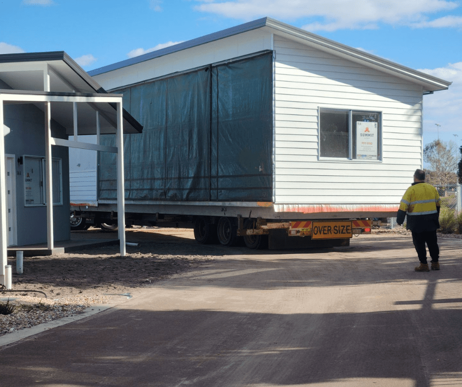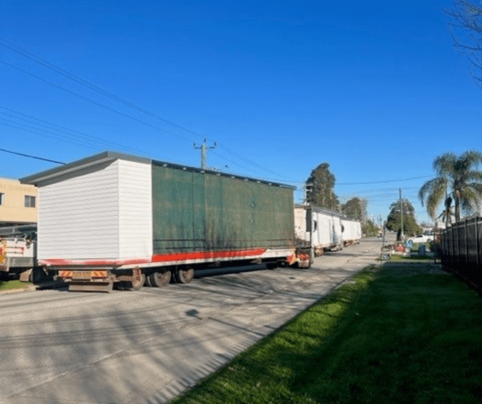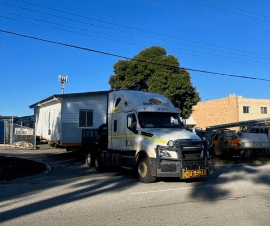 Because this Cormorant is a two slab design, it takes two trucks to get it down to Australind.